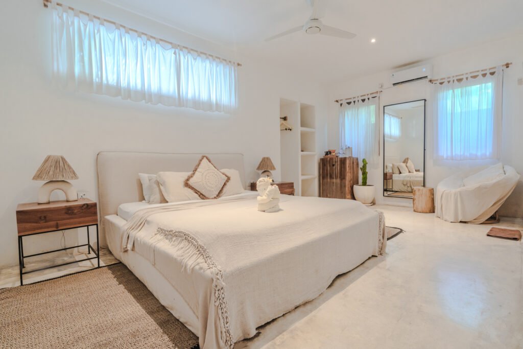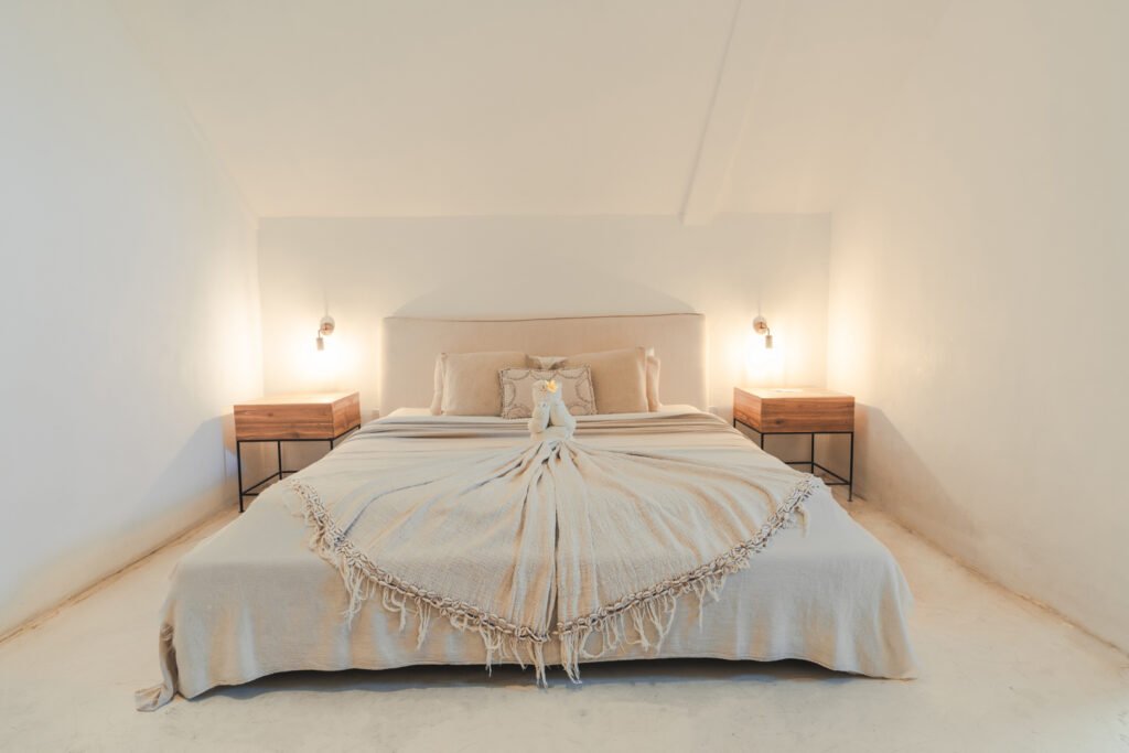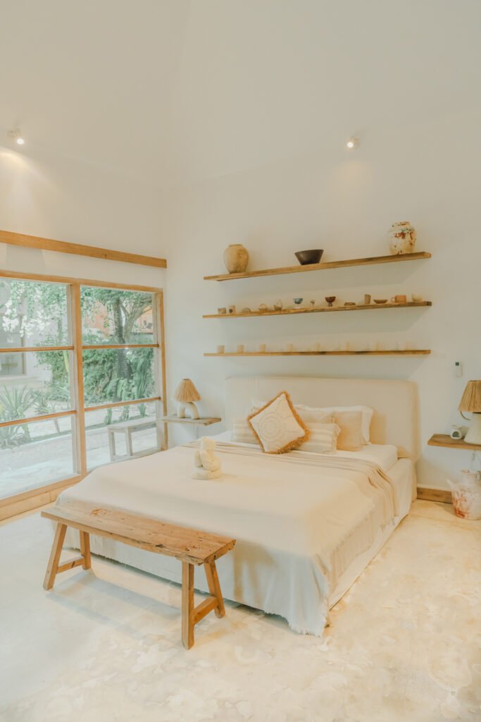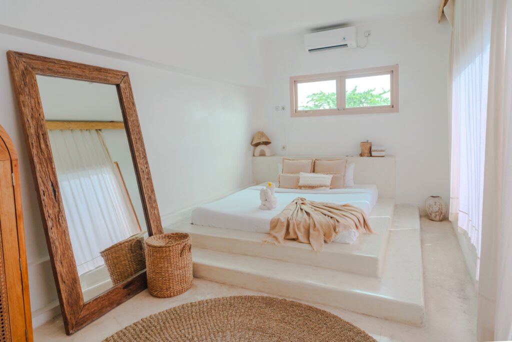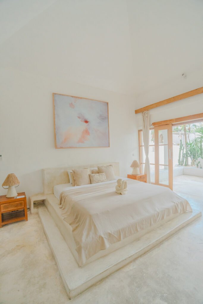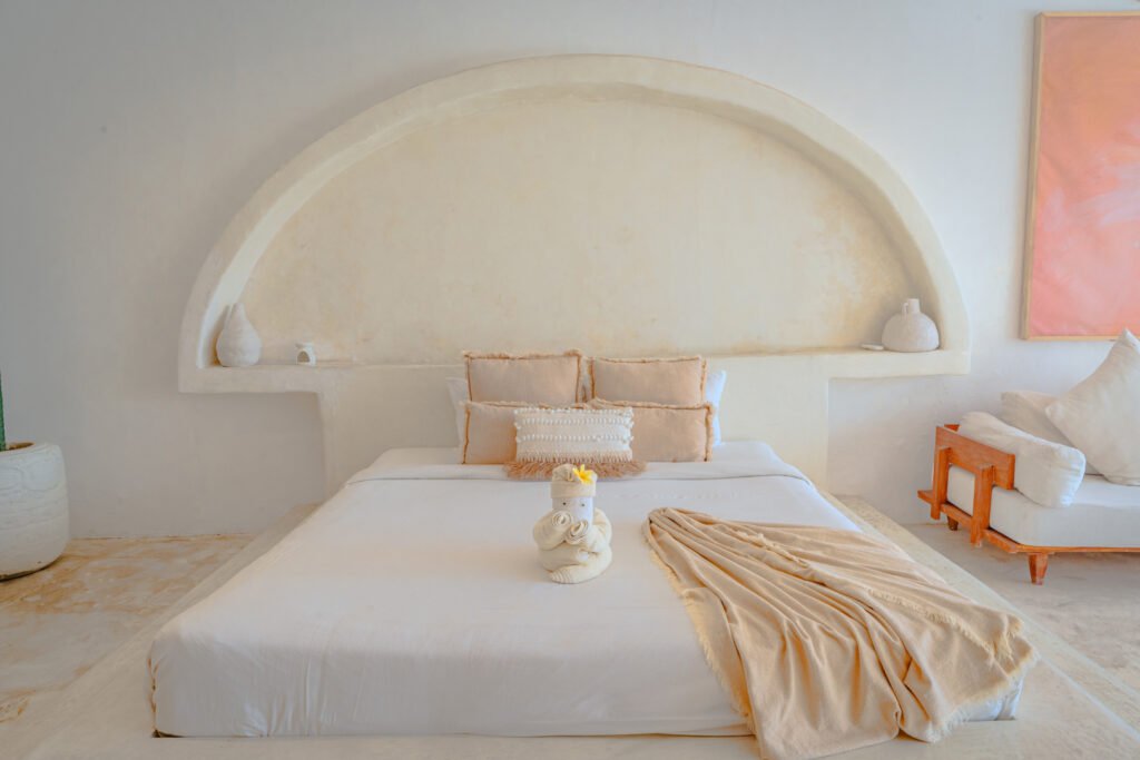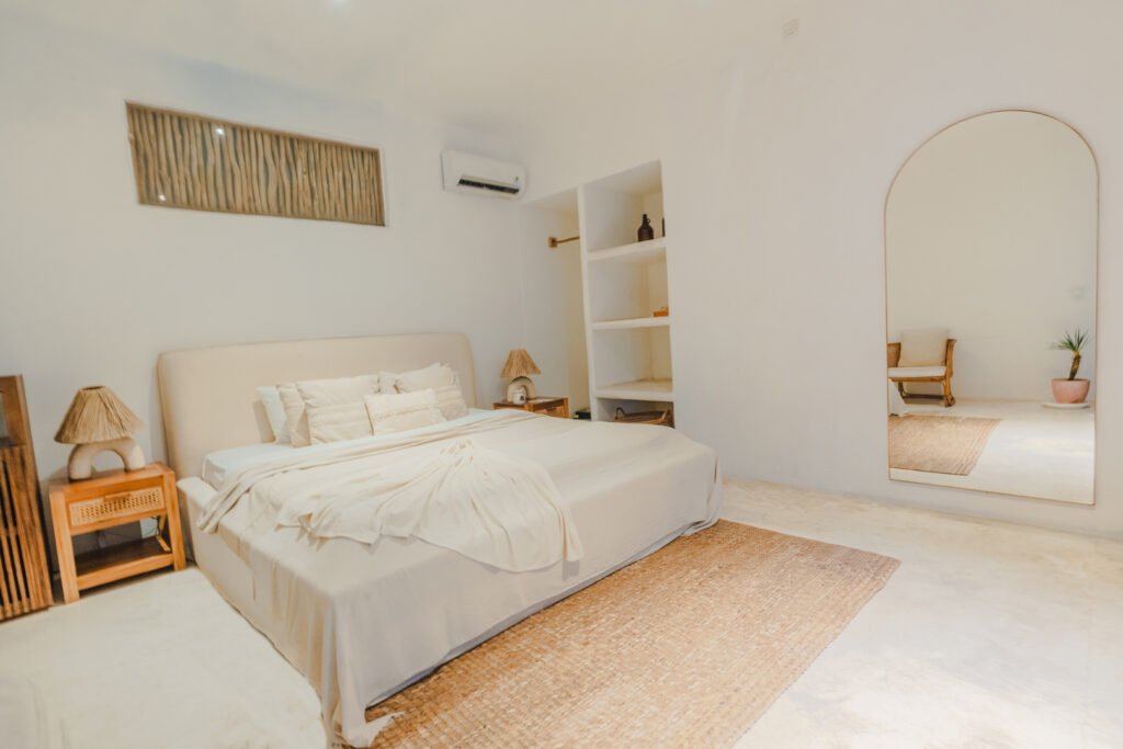 Our Deluxe Room features an extra- large double bed, offering air conditioning, an ensuite bathroom, and complimentary WiFi. The room is adorned with custom-designed furniture and unique art pieces, creating an inviting atmosphere that reflects the beauty and culture of Bali.